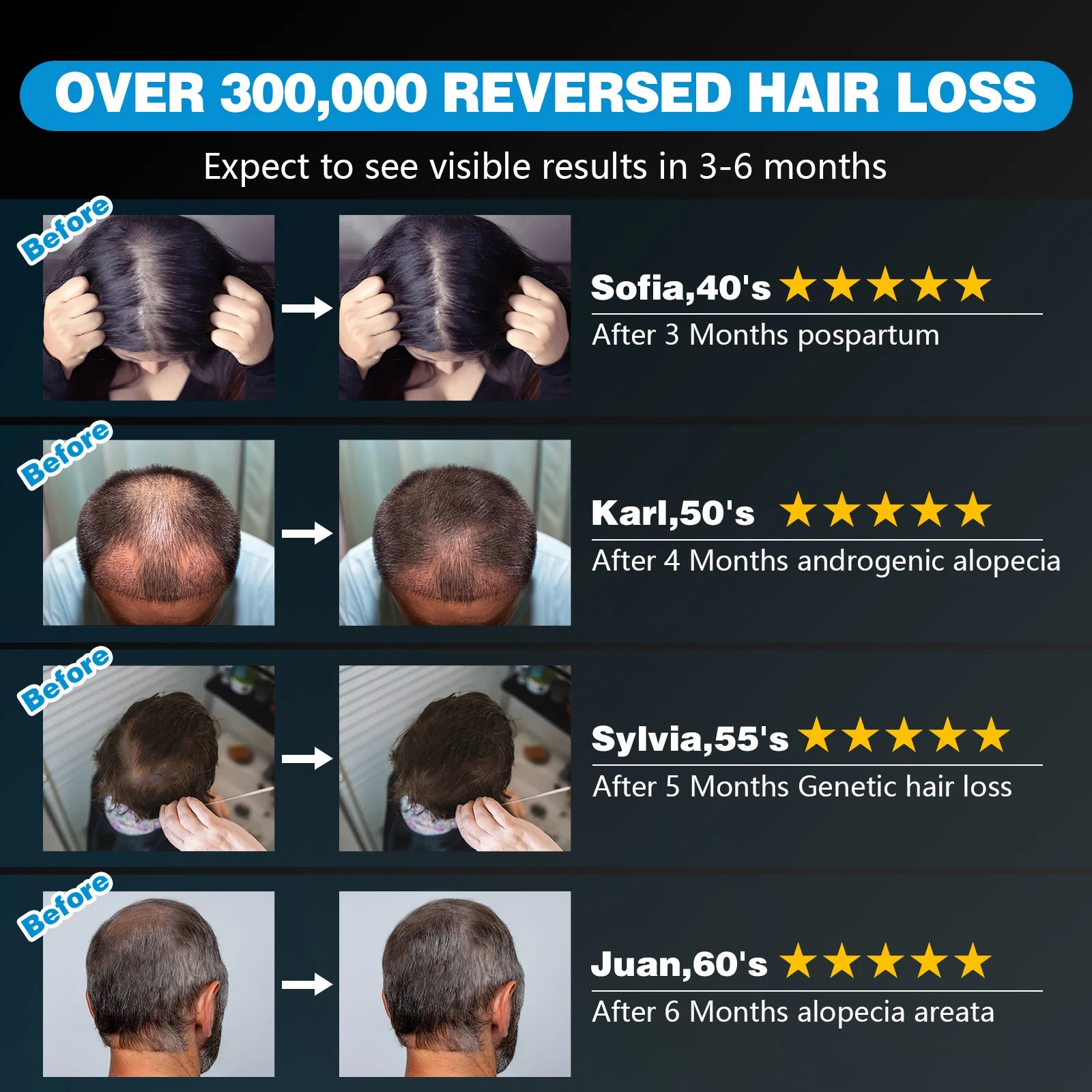 6 Months Growth Guarantee: you can expect a visible improvement in hair growth after 3 to 6 months (results may vary) if you do not have results with our laser hair growth cap