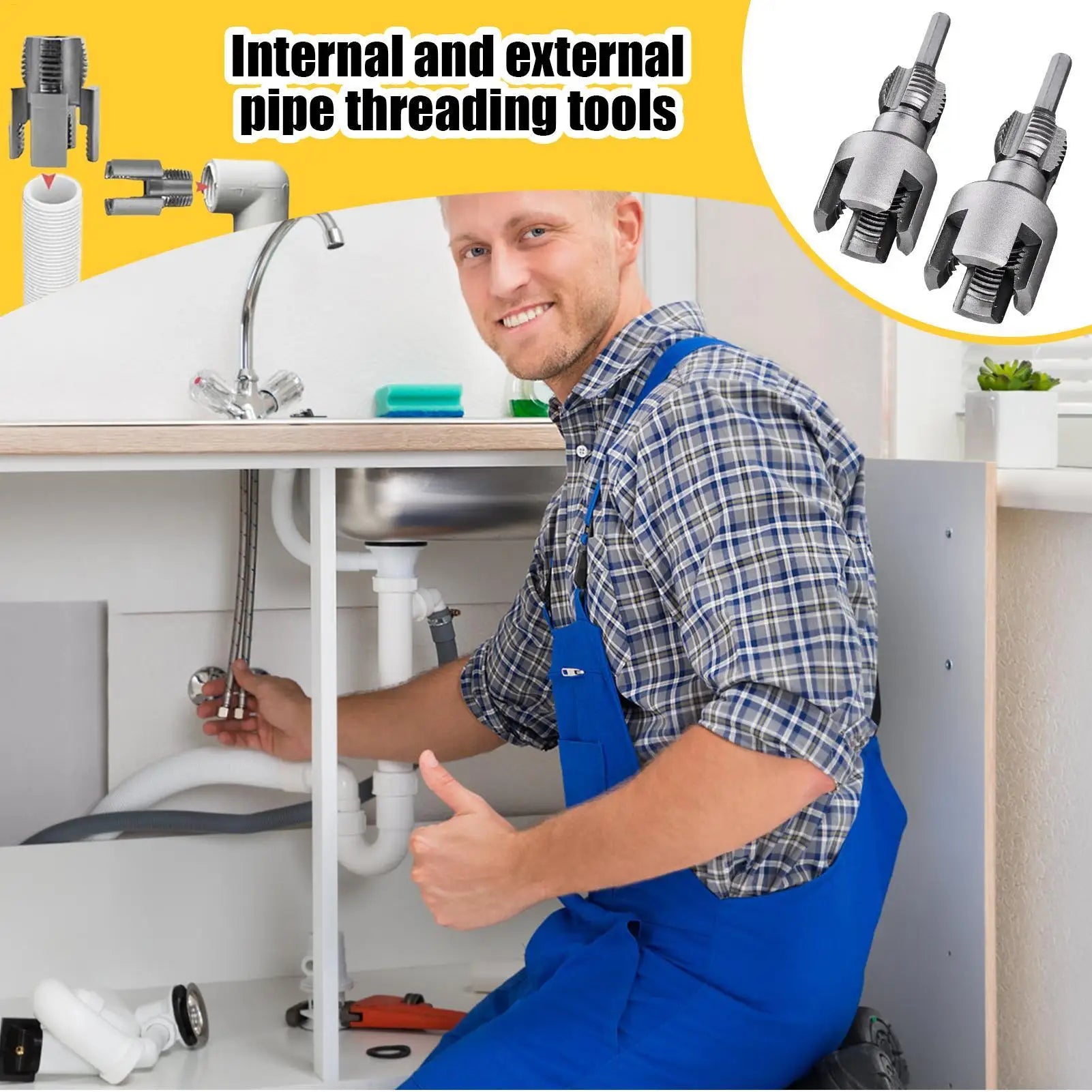 2pcs Water Pipe Threader Tapping Tool Internal Thread External Thread Integrated Die Water Pipe Opener