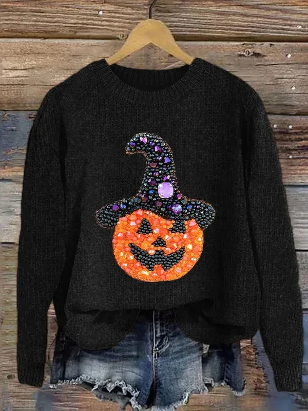 Autumn Winter Digital Printing Halloween Sweater Women Round Neck Party Club Knitwear Tops Casual Street Knit Jumpers Pullover