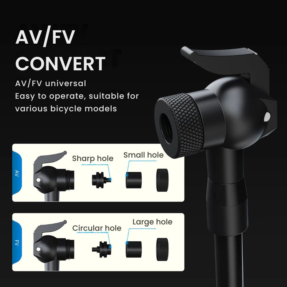 AV/FV Valve Conversion – Compatible with both Schrader (AV) and Presta (FV) valves for versatility.