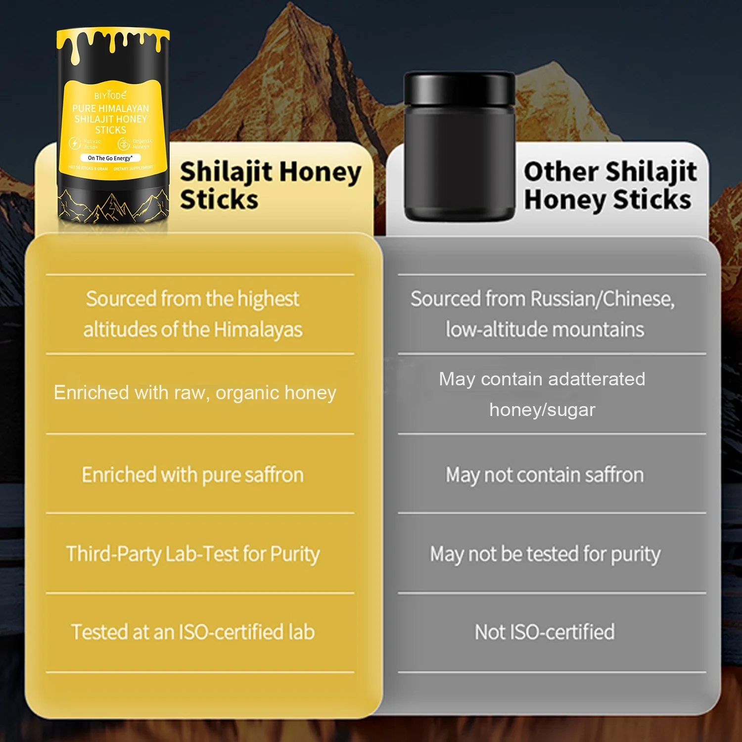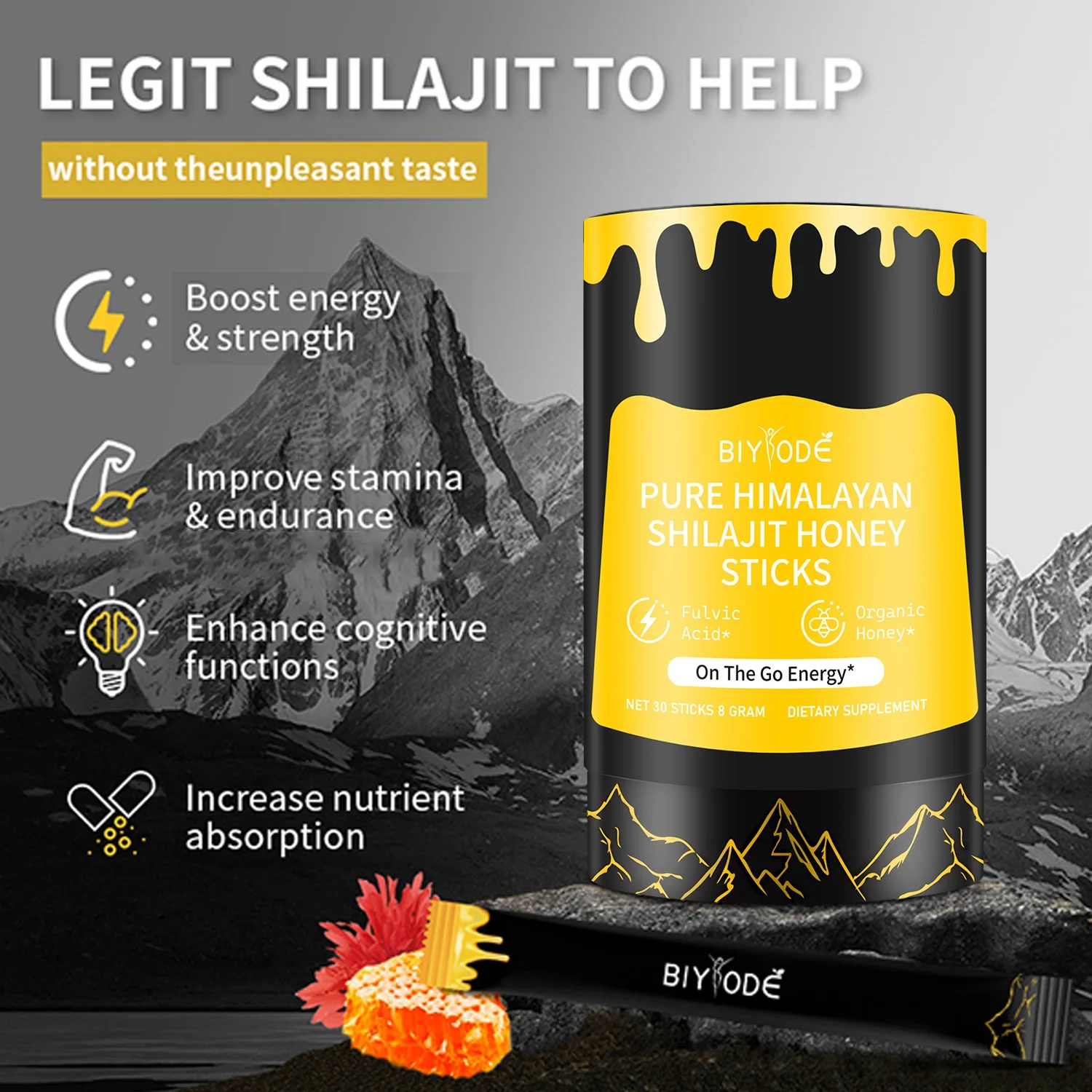【BIYODE】Shilajit Honey Sticks - 100% Pure Natural Energy Boost Stick - 1.76 Oz Stick