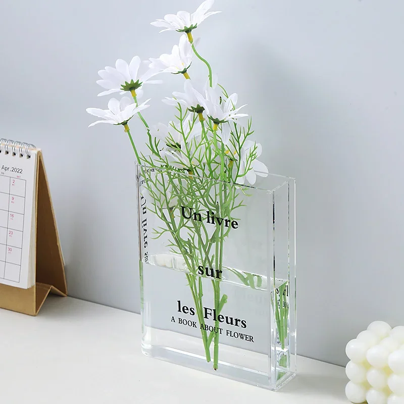Acrylic Book Vase is made of durables acrylic material with a transparent design, which is light than glass, less prone to damage, and has a longer service life.