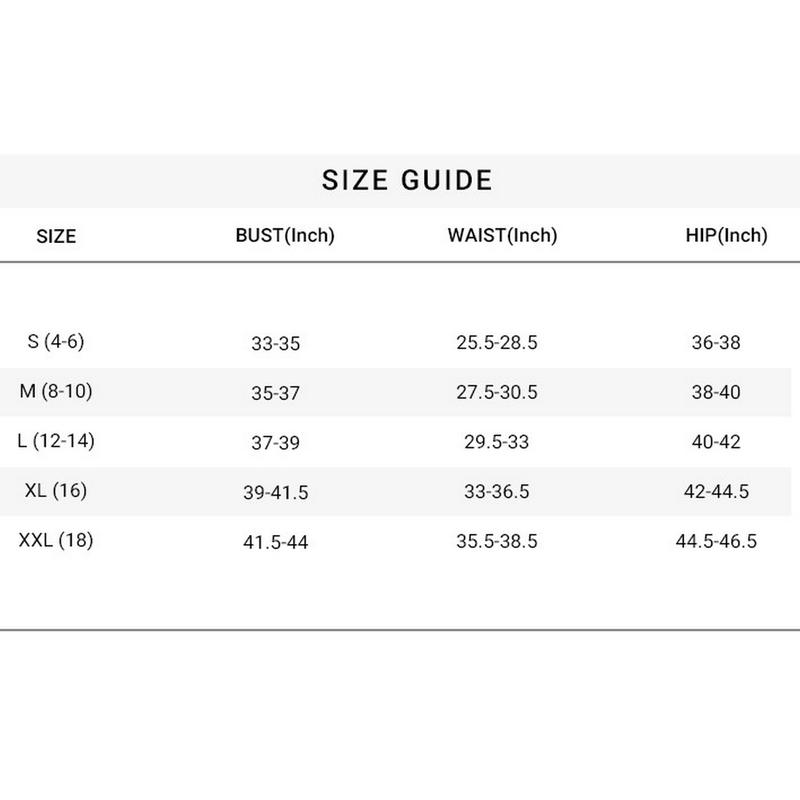 - Size: Available in a variety of sizes: XS (US 0-2), S (US 4-6), M (US 8-10), L (US 12-14), XL (US 16), XXL (US 18). Please refer to the size measurement chart in the product description to choose the suitable size before purchasing.