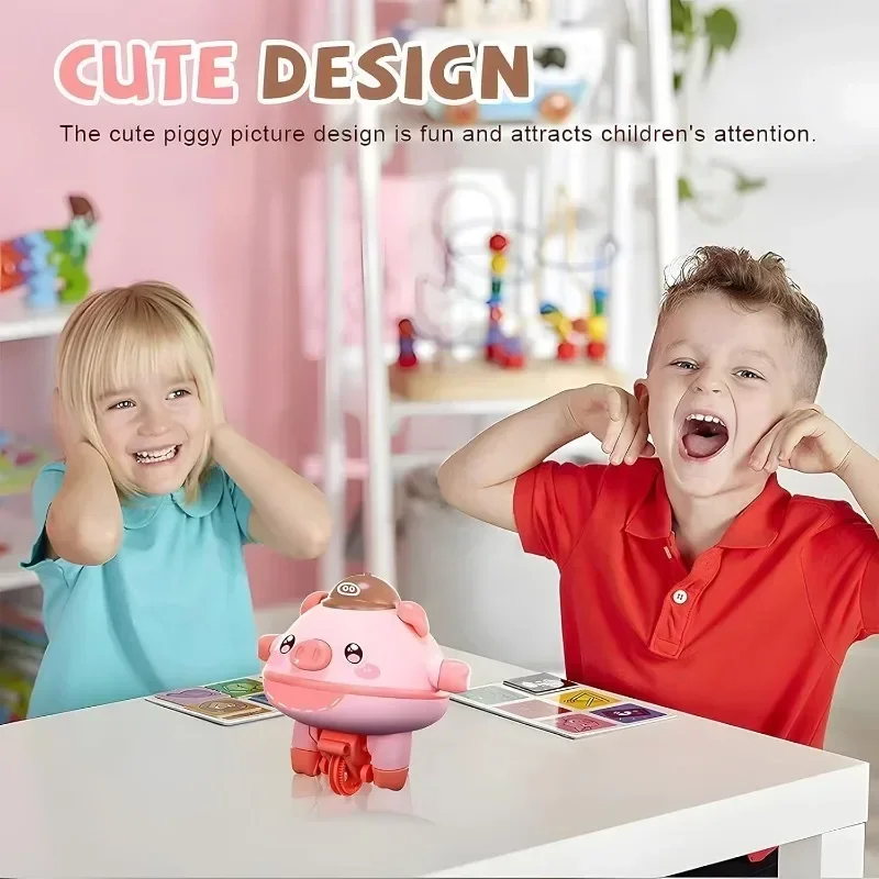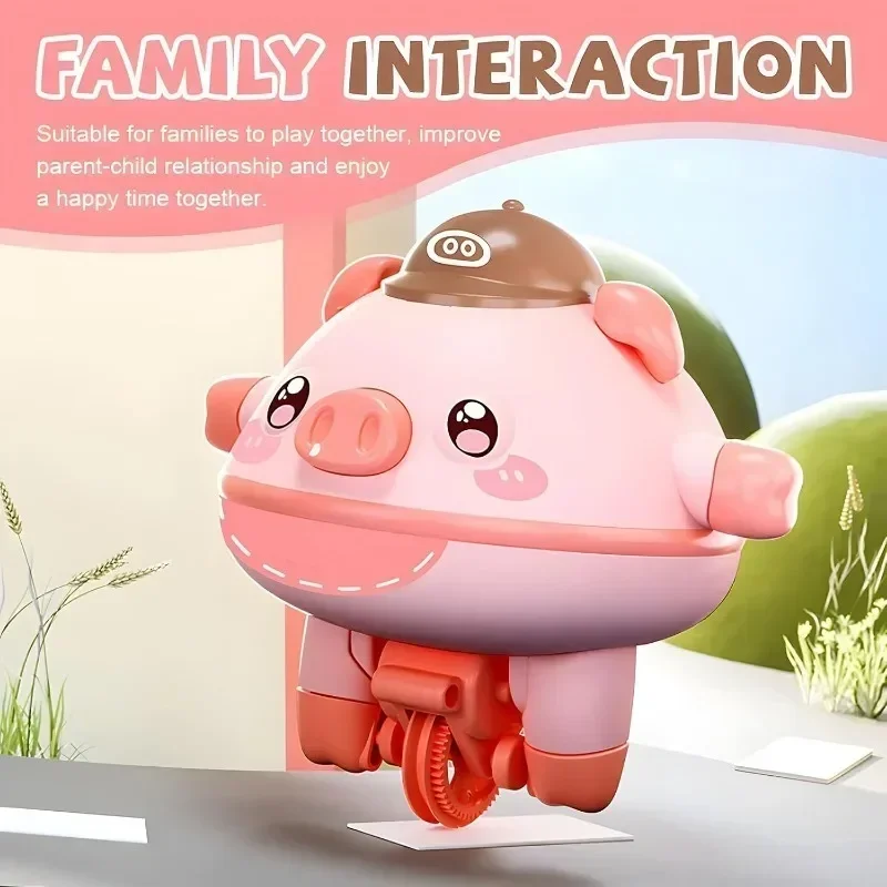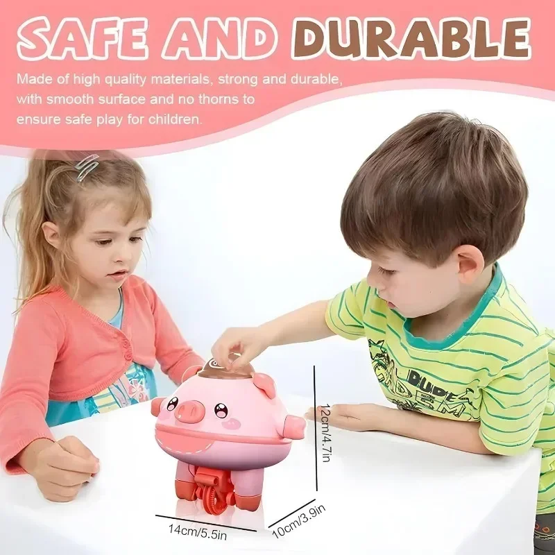 Cute design: The cute piggy picture design is fun and attracts children's attention. Easy to use: Simply press lightly and the piggy bank cup shakes, allowing children to play happily. Fun: Children can watch the pig sway and chase it, making it fun and interactive. Safe And Durable: Made of high quality materials, strong and durable, with smooth surface and no thorns to ensure safe play for children. Family Interaction: Suitable for families to play together, improve parent-child relationship and enjoy a happy time together.