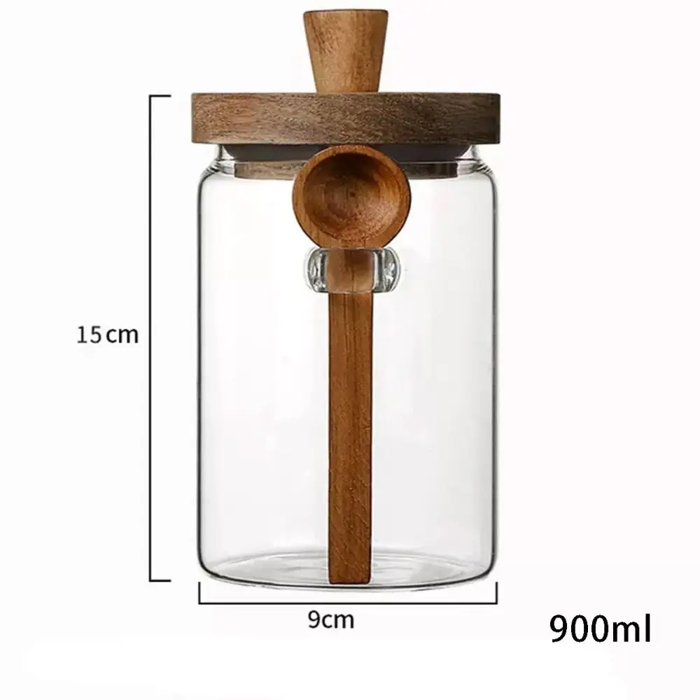Glass Sealed Jar Five Grains Coffee and Tea Storage Can with Wooden Spoon Seasoning Bottle Kitchen Moisture-Proof Storage Tank