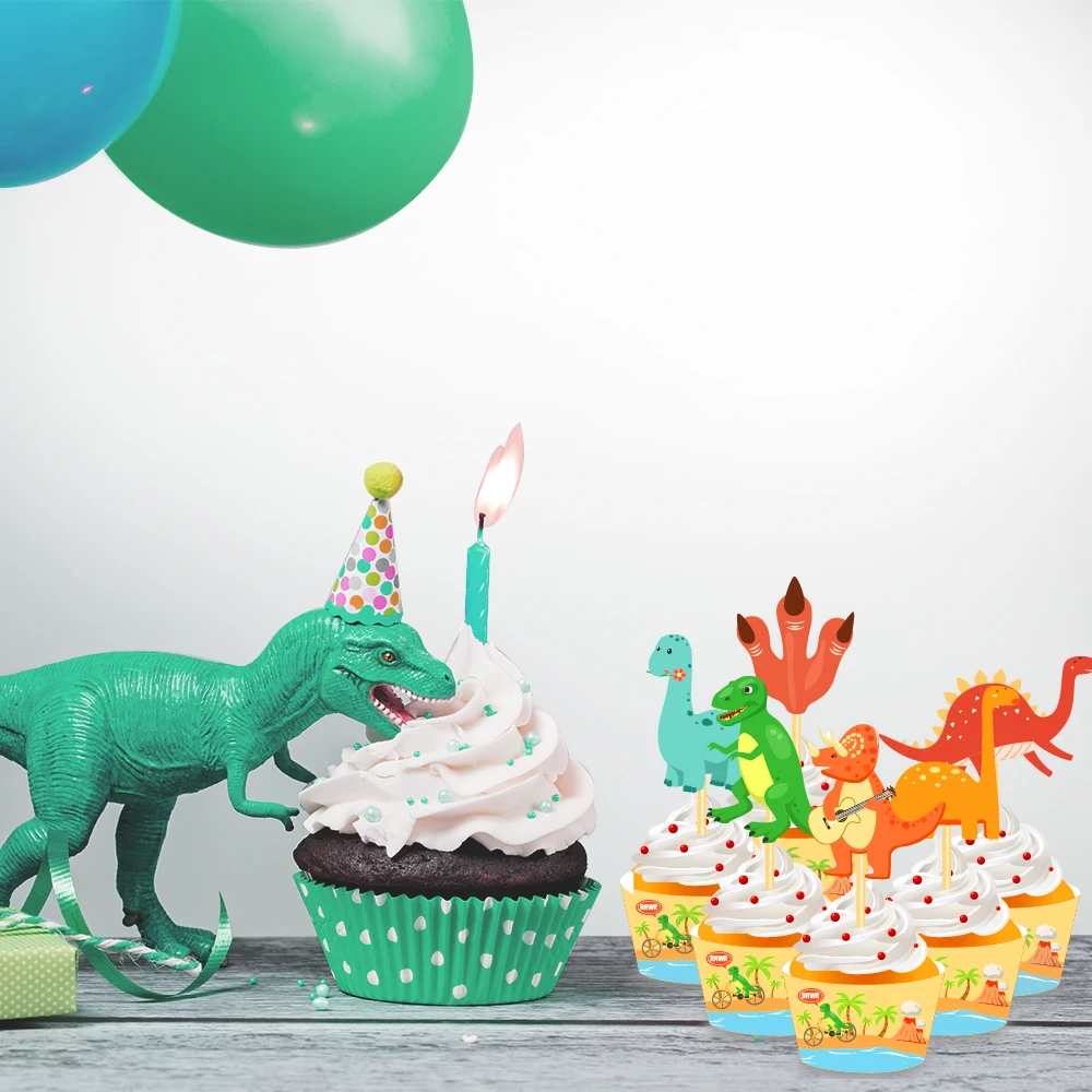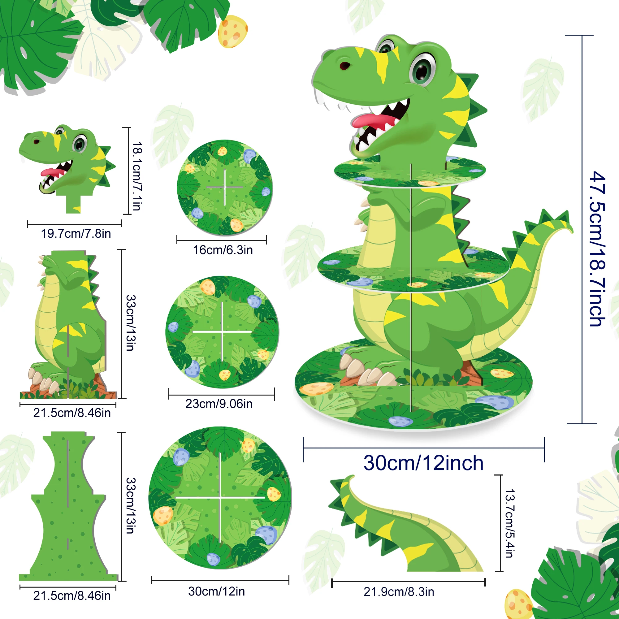 Kids Cartoon Dinosaur Birthday Party Cake Display Stand and Cake Toppers Baby Shower Party Cupcake Rack Holder Cake Supplies