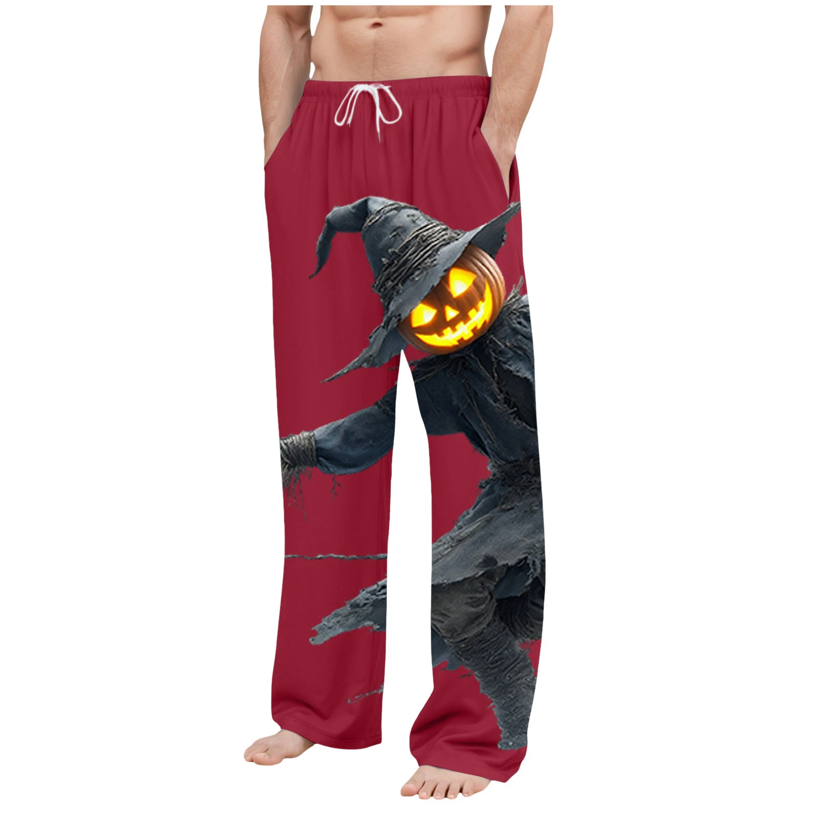 Men'S Halloween Glowing Pumpkin Bogy Printed Pocket Home Clothes Pajama Pants Bottoms Big Slipper