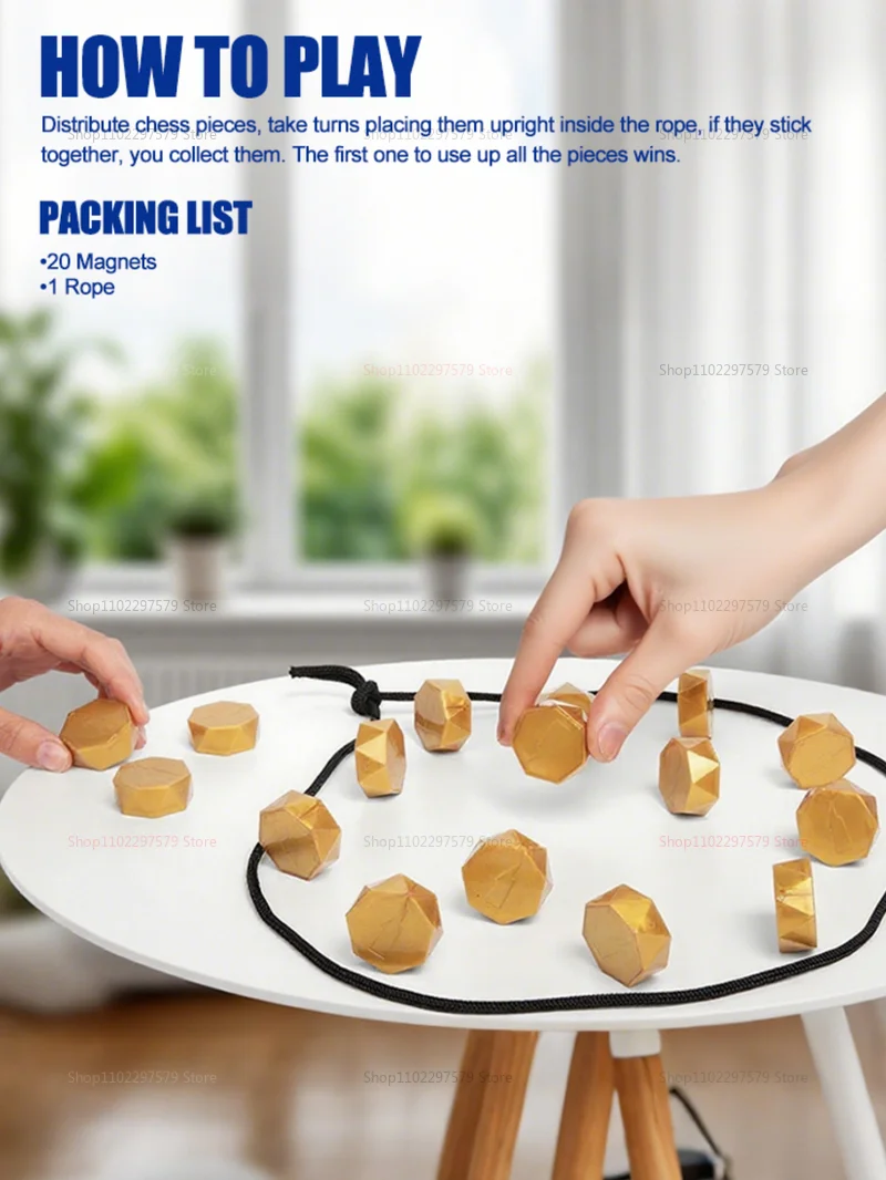 **Magnetic Tension Puzzle Game – Perfect for Family Fun, Parties & Travel** • Experience the thrill of strategic gameplay with this magnetic tension game designed for all ages. Easy to learn in minutes – simply place the magnetic chess pieces along the sturdy rope, taking turns to build a magnetic sculpture. When pieces naturally attract each other, you collect them! The goal: be the first to utilize all your pieces and win.