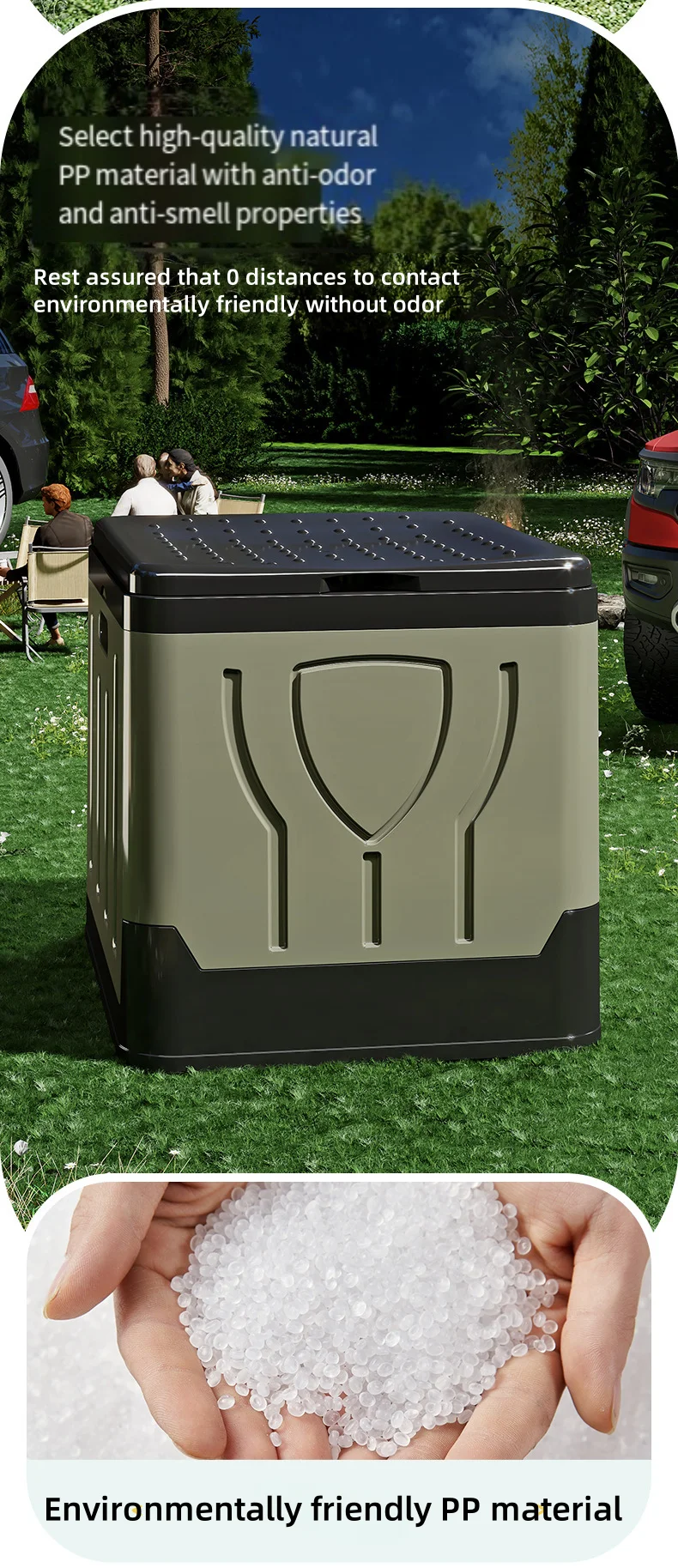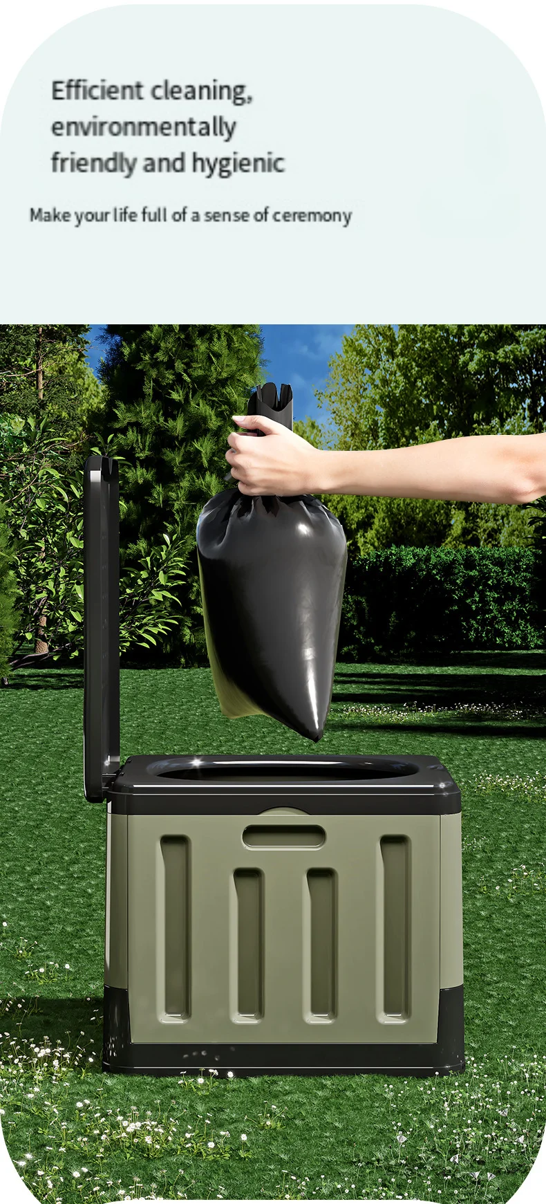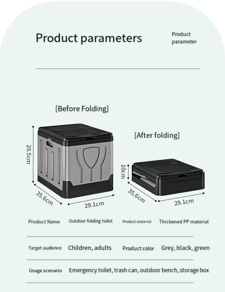 • Multi-Functional Design – Beyond serving as an outdoor toilet, this versatile product functions as a portable seat, trash bin, storage container, or emergency sanitation solution, suitable for camping, hiking, road trips, caravanning, and outdoor events.
