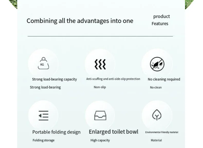 • Hygienic & Easy to Clean – Reusable and washable, the foldable toilet is designed for effortless cleaning and maintenance. Its smooth surfaces and simple disassembly facilitate quick sanitation, ensuring a hygienic experience every time.