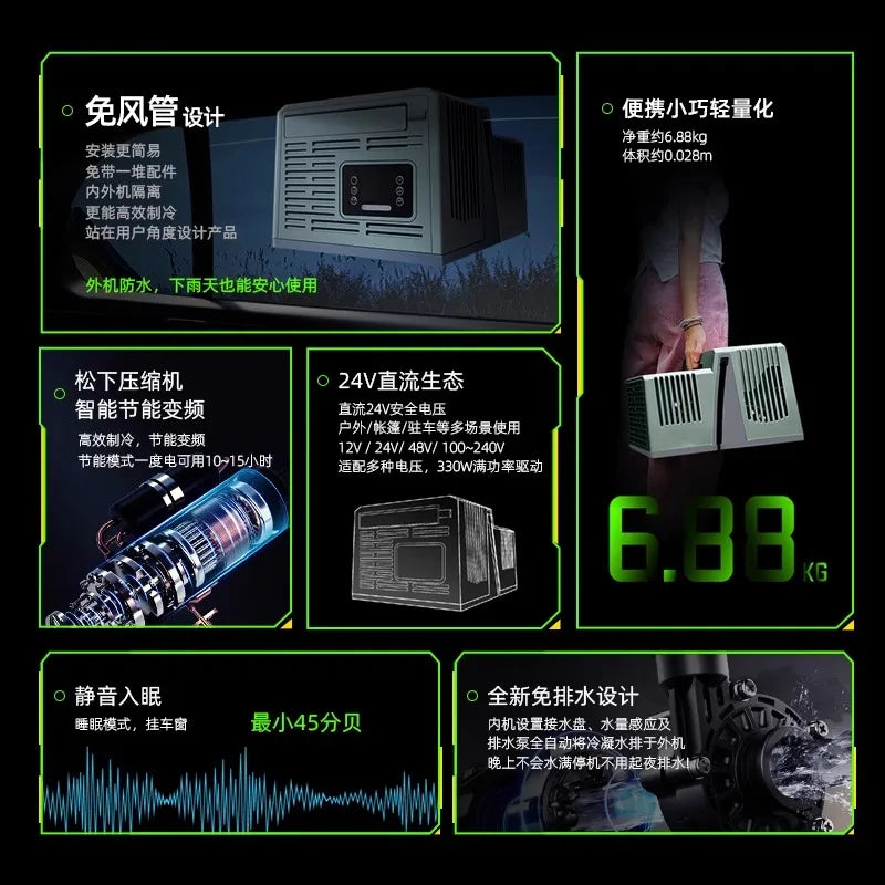 Portable Parking Air Conditioner Outdoor Camping Tent Mobile Air Conditioner Hanging Window Split 24V DC Frequency Conversion