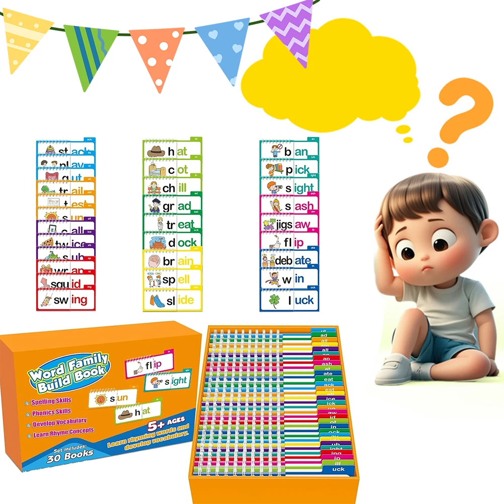 Word Families ABC Vocabulary Flash Cards Kindergarten Sight Word Flash Cards Learn To Read Phonics Flash Cards Read and Rhyme Flip Activity Book Educational Reading Games