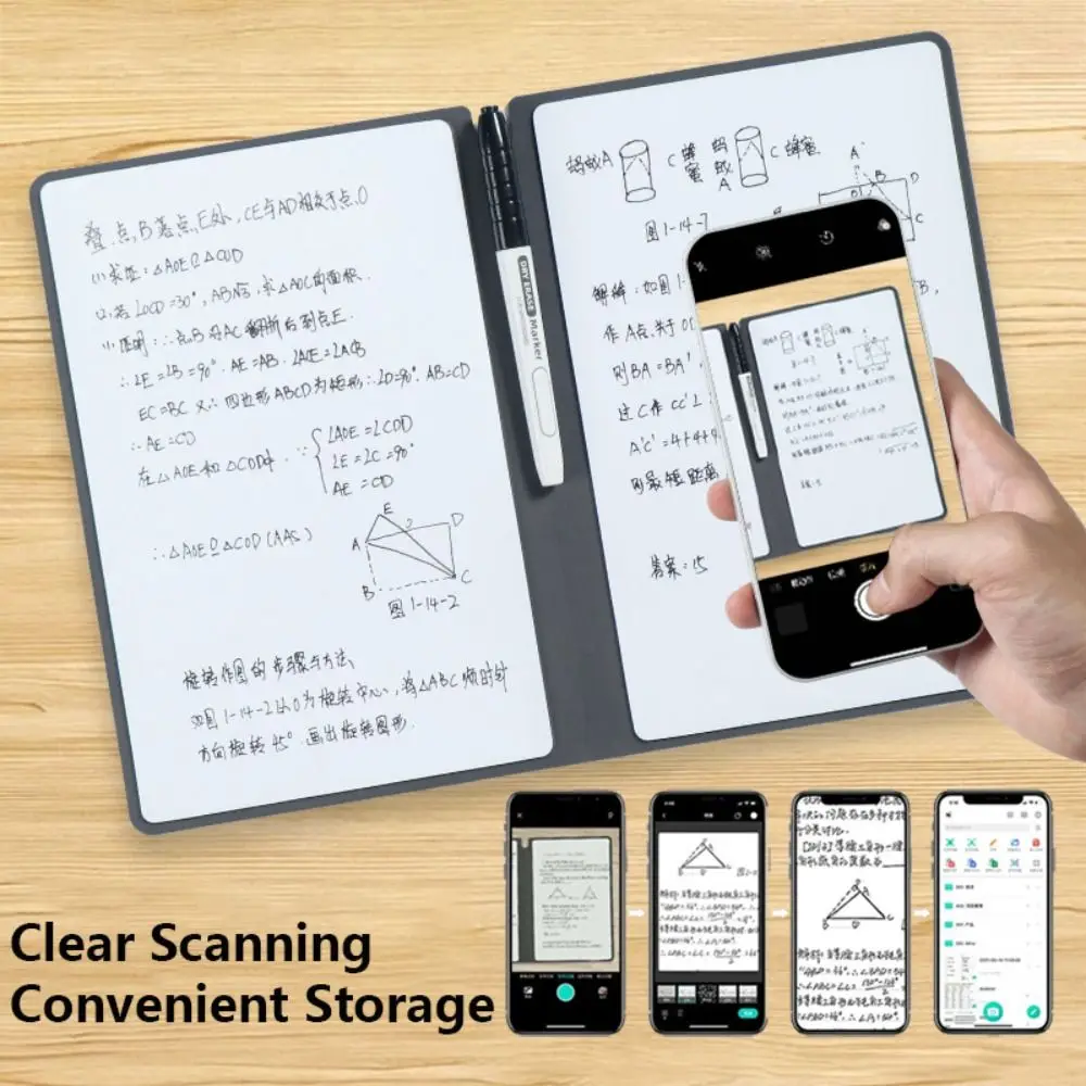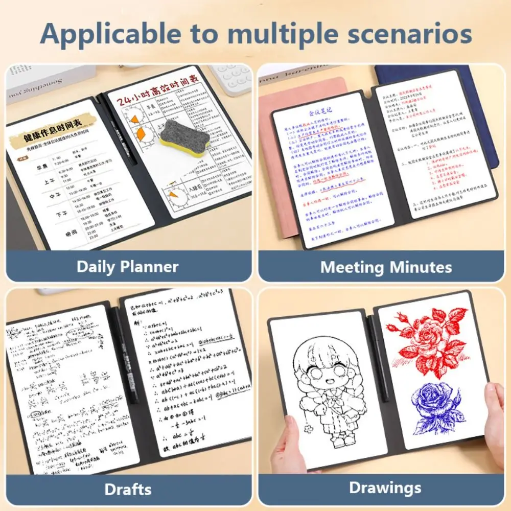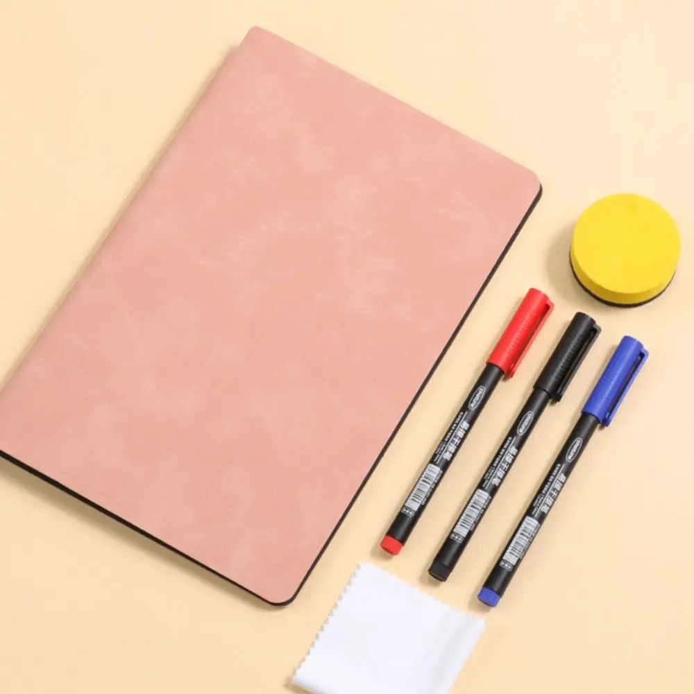 Reusable A5 Whiteboard Notebook Leather With Whiteboard Pen Writing Board With Erasing Cloth Stationery Memo Pad Students Gift