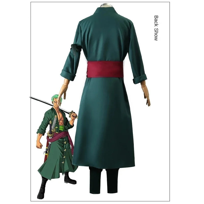 Roronoa Zoro Cosplay Anime Figures Costume Uniform Green Coat Pants Head Scarf Roronoa Zoro Wig Earrings Halloween Men Clothes