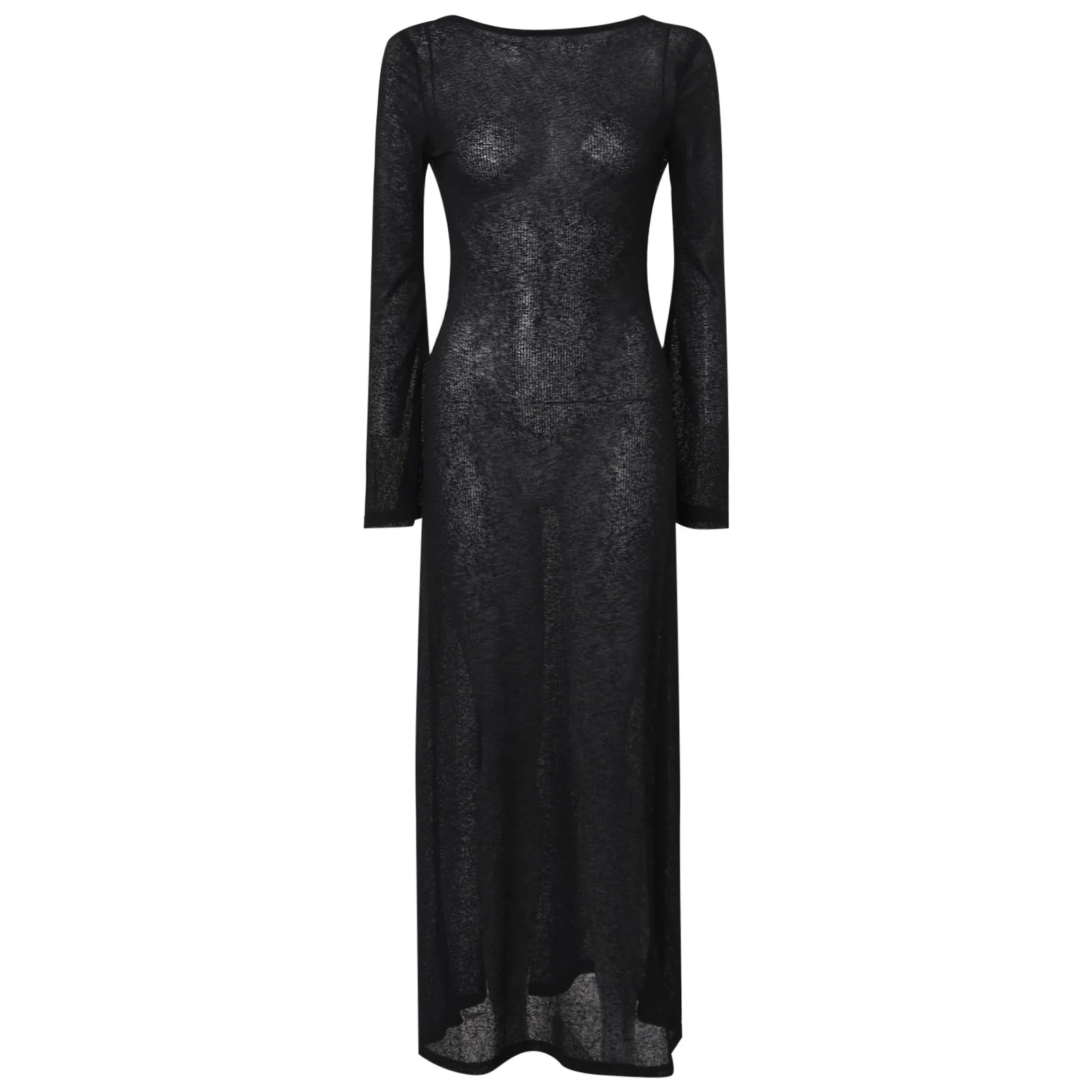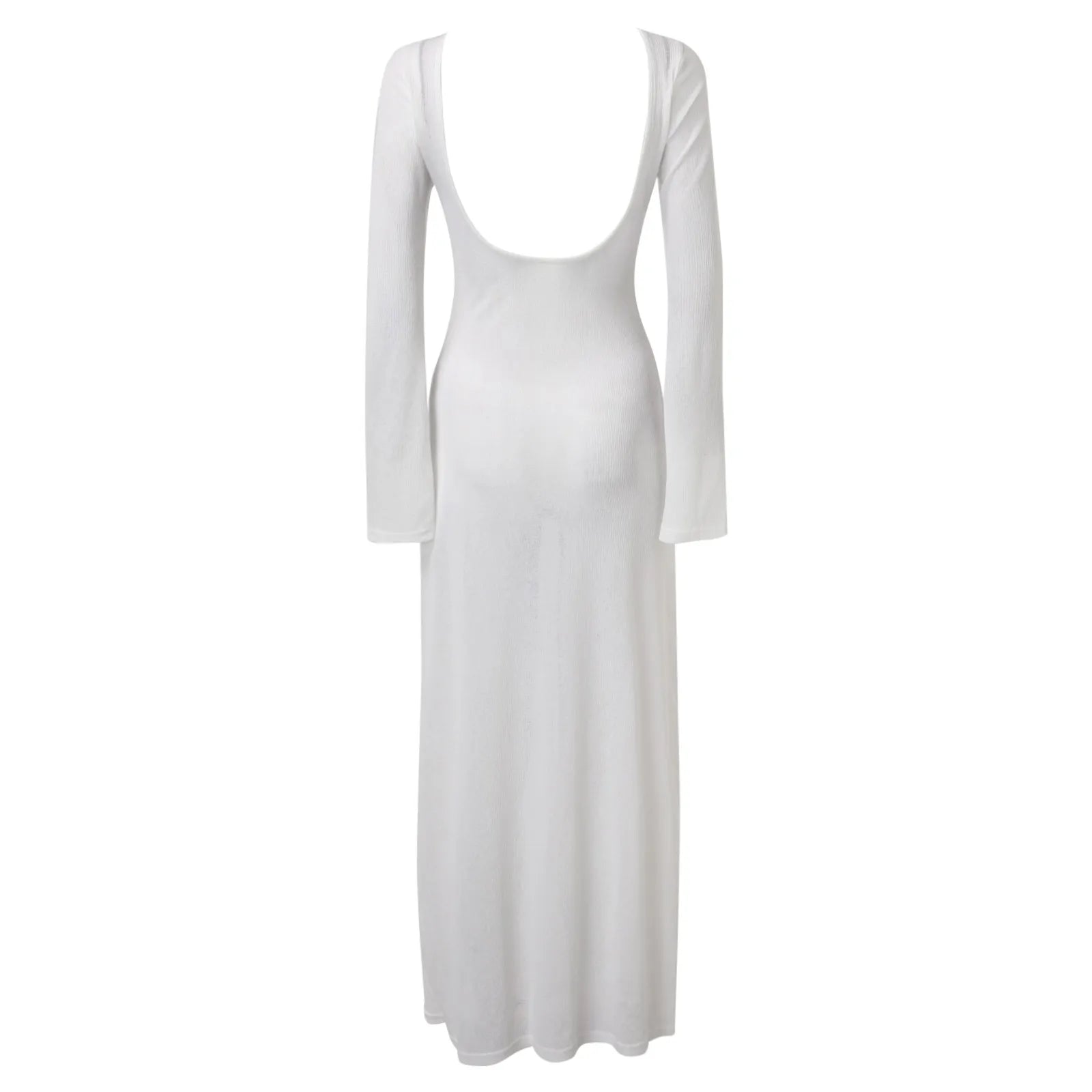 Sexy Women Long Knit Sleeve Bikin Backless Solid Dresses Fashion Cover Up Female See-Through Hollow-Out Beach Knitwear Dress