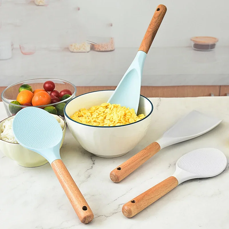 Silicone Rice Shovel Spoon Kitchenware with Long Wooden Handle Household Non-Stick Big Cooking Spatula Scoop Kitchen Gadgets