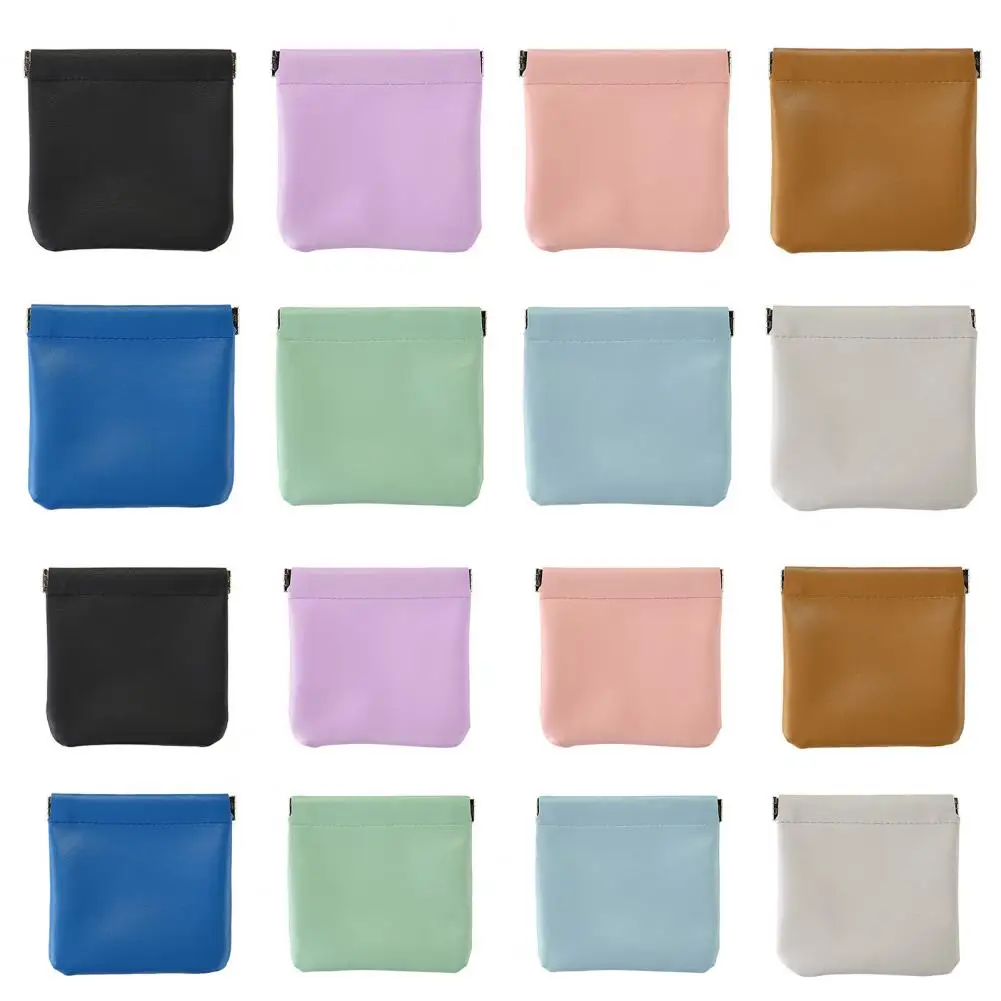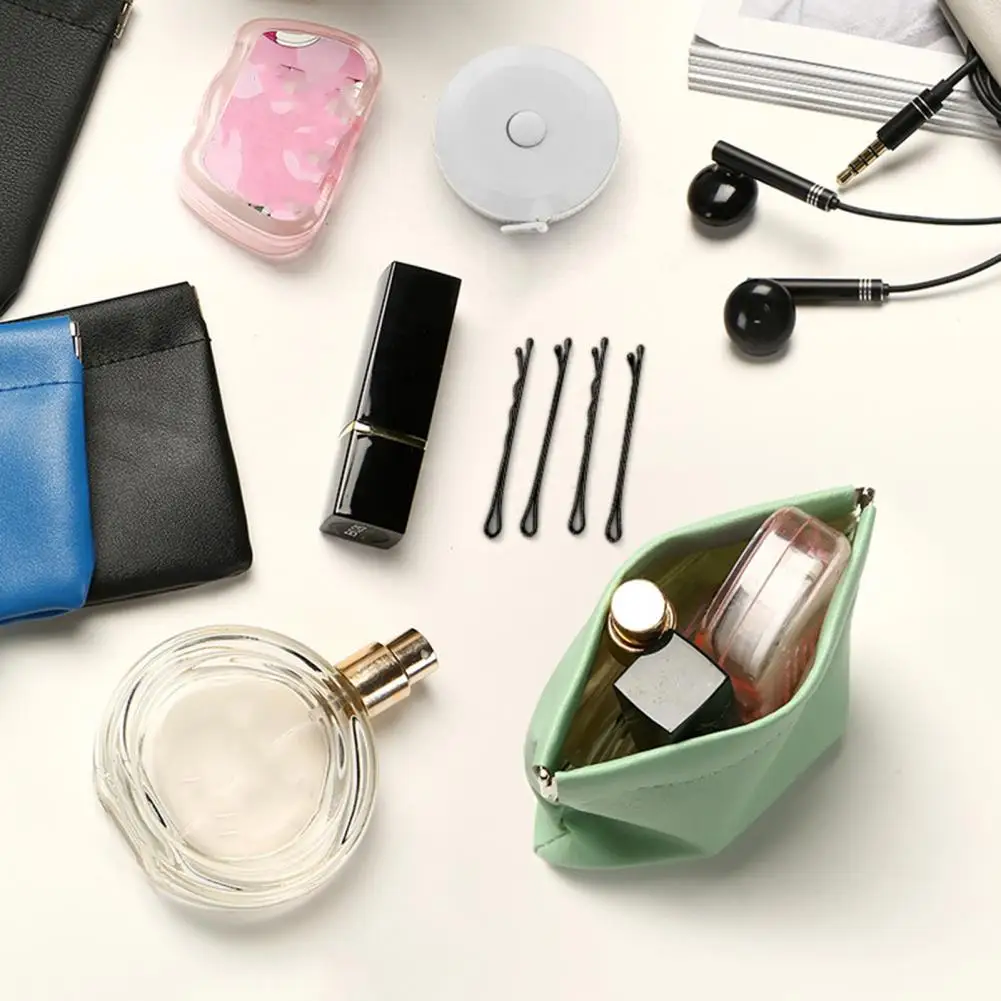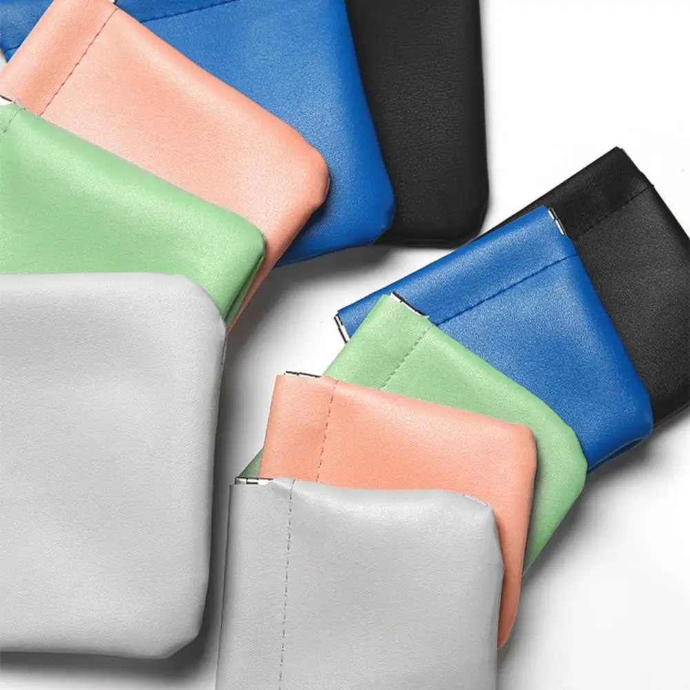 Small Storage Bag Automatic Closing Lipstick Pouch Leather Makeup Pouch Portable Coins Keys Cable Earphone Jewelry Organizer Bag