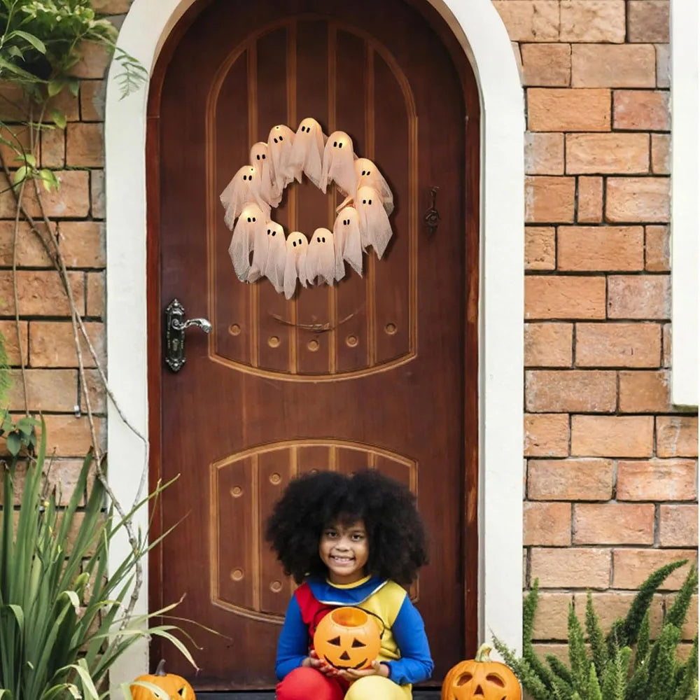 👻 SpookGlow™ Ghost Wreath – Light Up Your Haunt