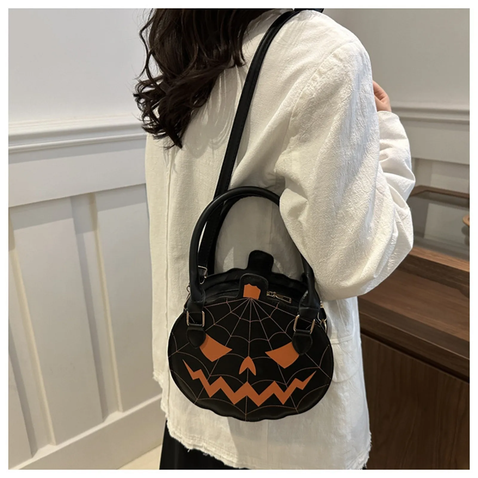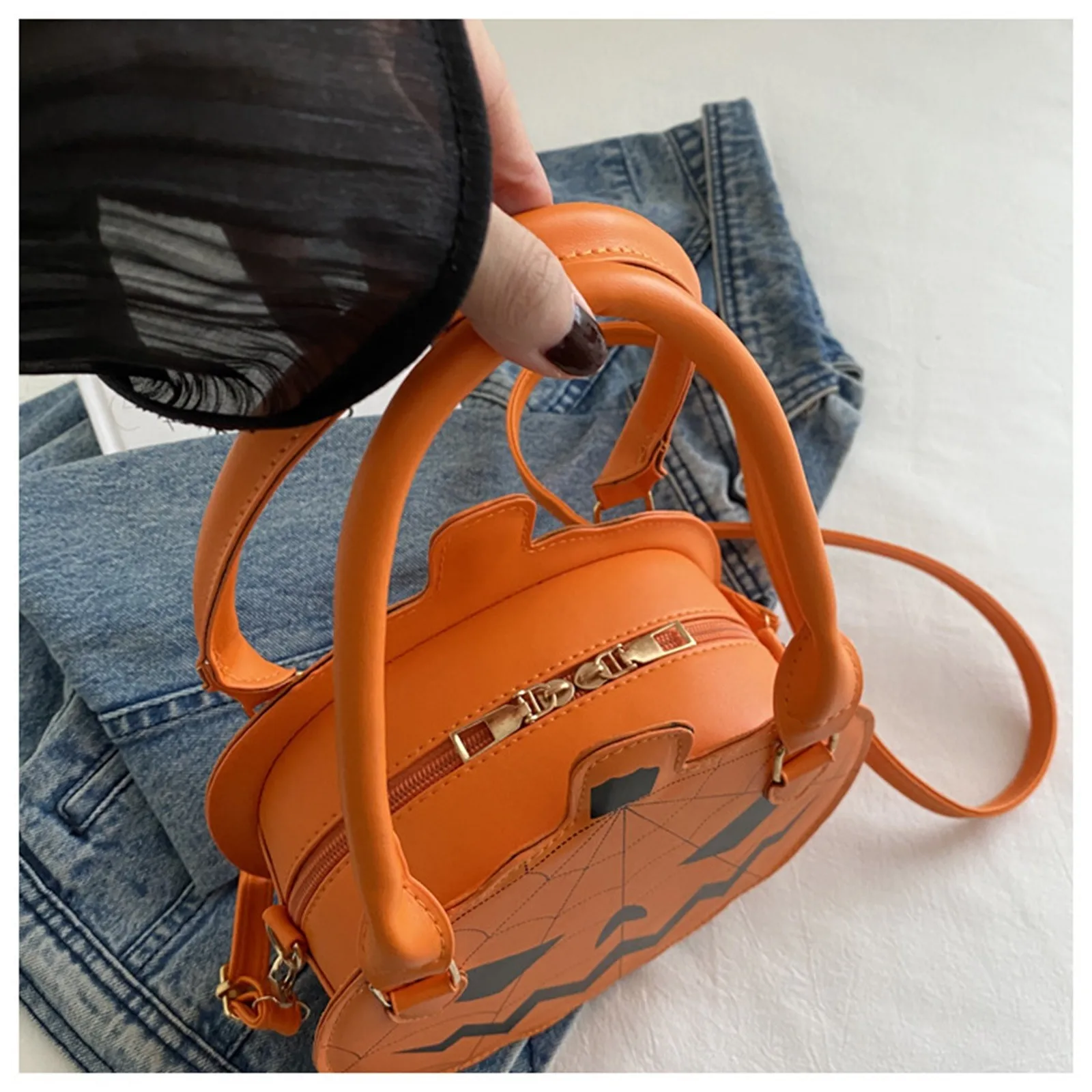 Trendy Cartoon Pumpkin Crossbody Bag Large Capacity Casual Halloween Fashionable Single Shoulder Bag with Zipper Polyester Fiber