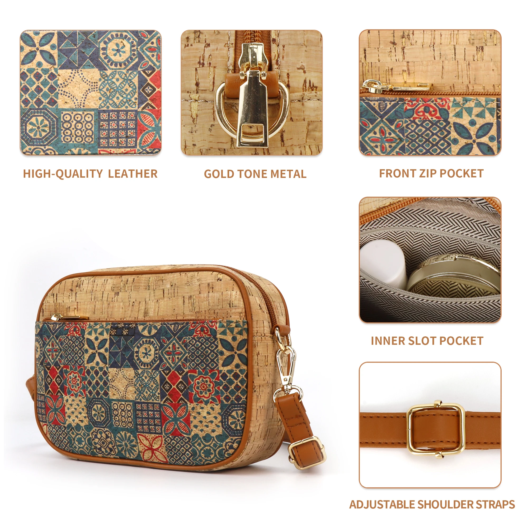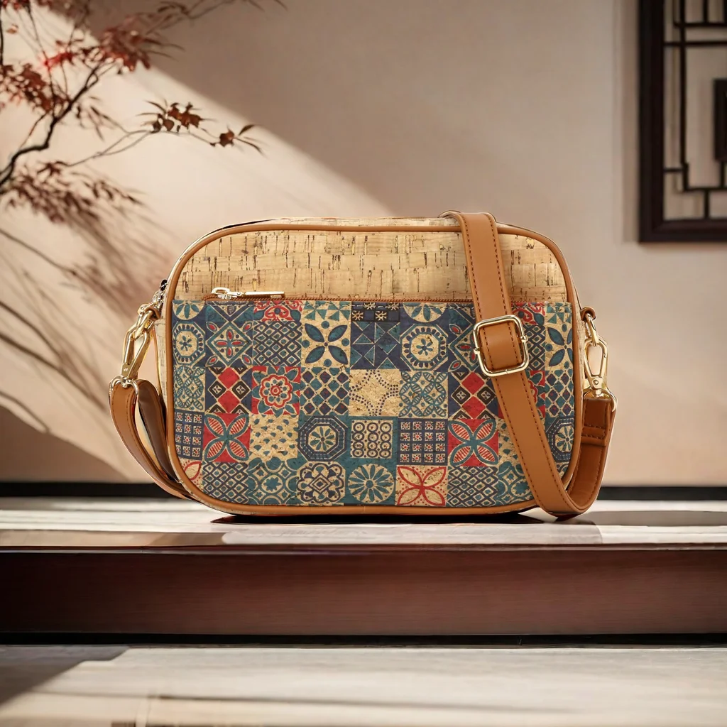 Vintage Flower Print Crossbody Bag, Women's Tree Bark Pattern Purse, Ethnic Style Shoulder Bag, Versatile